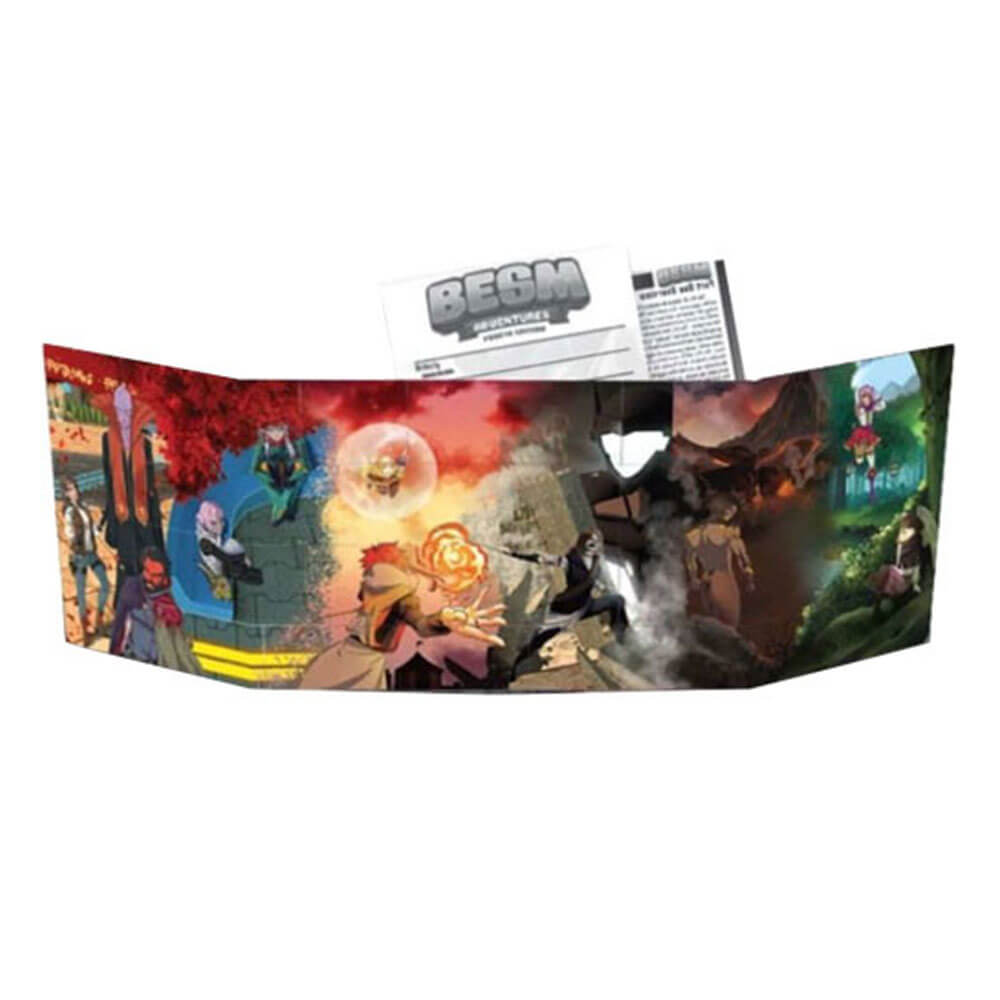 Dieser handliche und robuste 4-Panel-Referenzbildschirm für Spielleiter bietet einen zentralen Ort für BESM-Tabellen, Diagramme und andere Ressourcen, verpackt in einem atemberaubenden Vollfarb-Panoramabild auf der Vorderseite.