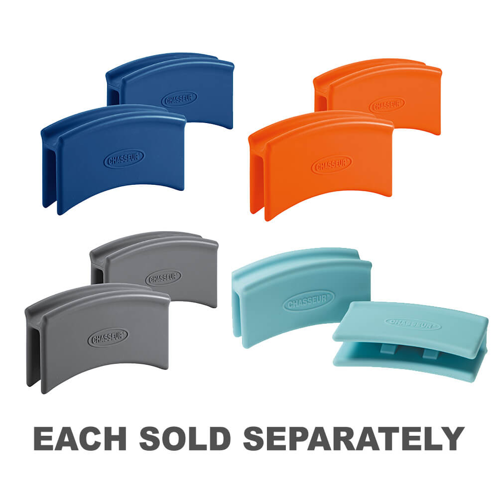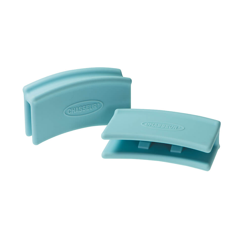 Das in Frankreich entworfene Chasseur-Topfgriffhalter-Set in Blau besteht aus hochwertigem Silikon für eine hohe Hitzebeständigkeit von bis zu 240 Grad.