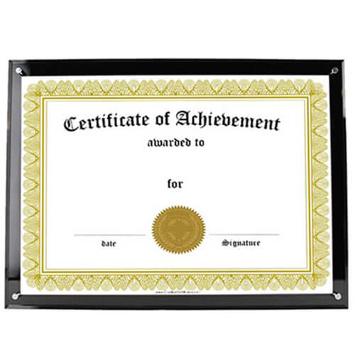 Hochwertiger A4-Acryl-Rahmenhalter zur Wandmontage in schwarzem Finish mit silbernen Metallschrauben zum Präsentieren von Papiermaterial zur Ansicht.