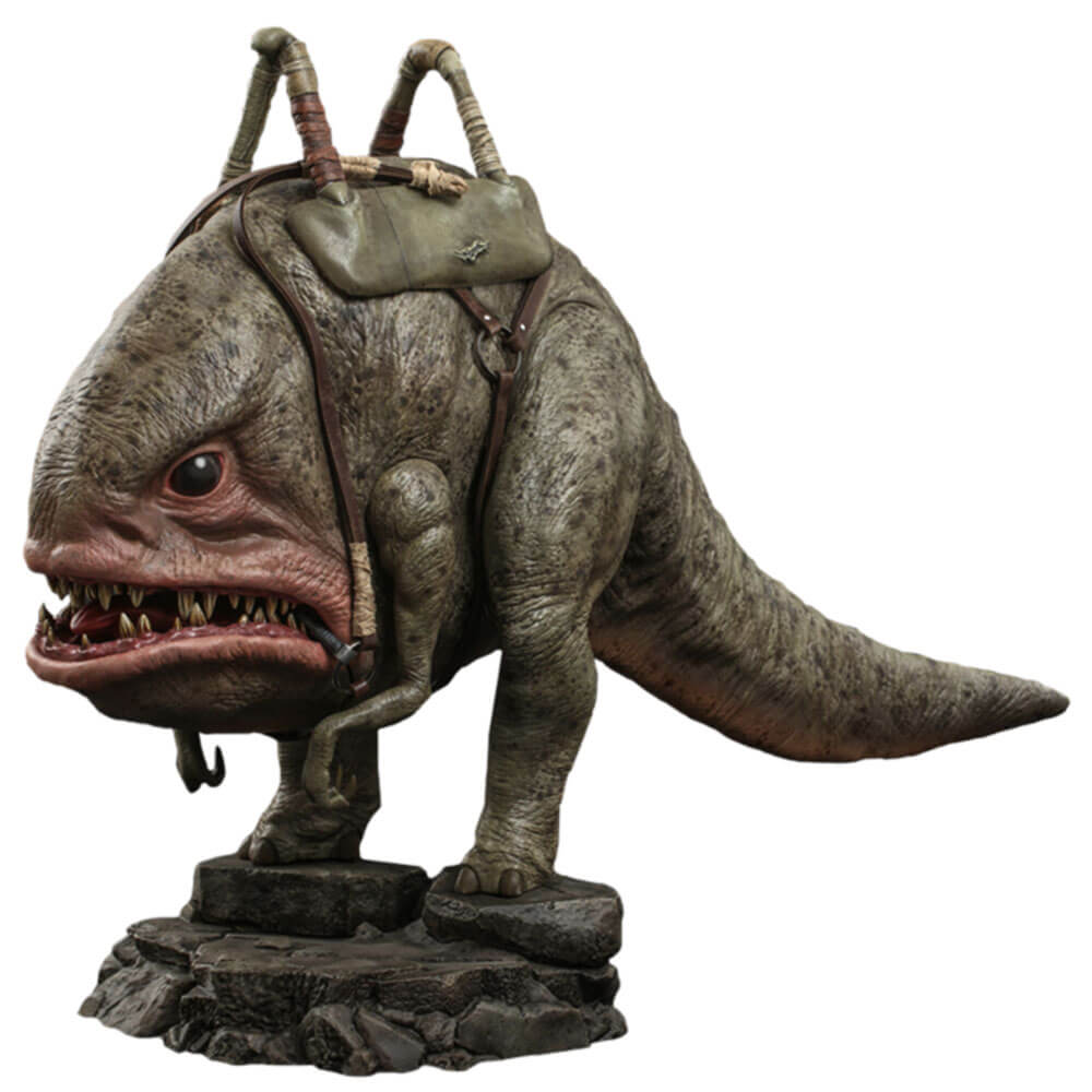 - Die Blurrg Hot Toys Actionfigur im Maßstab 1:6 wurde authentisch nach dem Vorbild der Kreatur aus Star Wars: The Mandalorian gefertigt und zeigt handbemalte Details mit einem kunstvoll geformten Kopf und Körper sowie beweglichen Beinen und Armen. Blurrg misst gewaltige 14,5 Zoll in der Höhe und 23,6 Zoll in der Breite und wird außerdem mit einer felsigen Ausstellungsbasis und einem Sattel geliefert, damit der Mandalorianer auf dem furchterregenden Tier reiten kann.