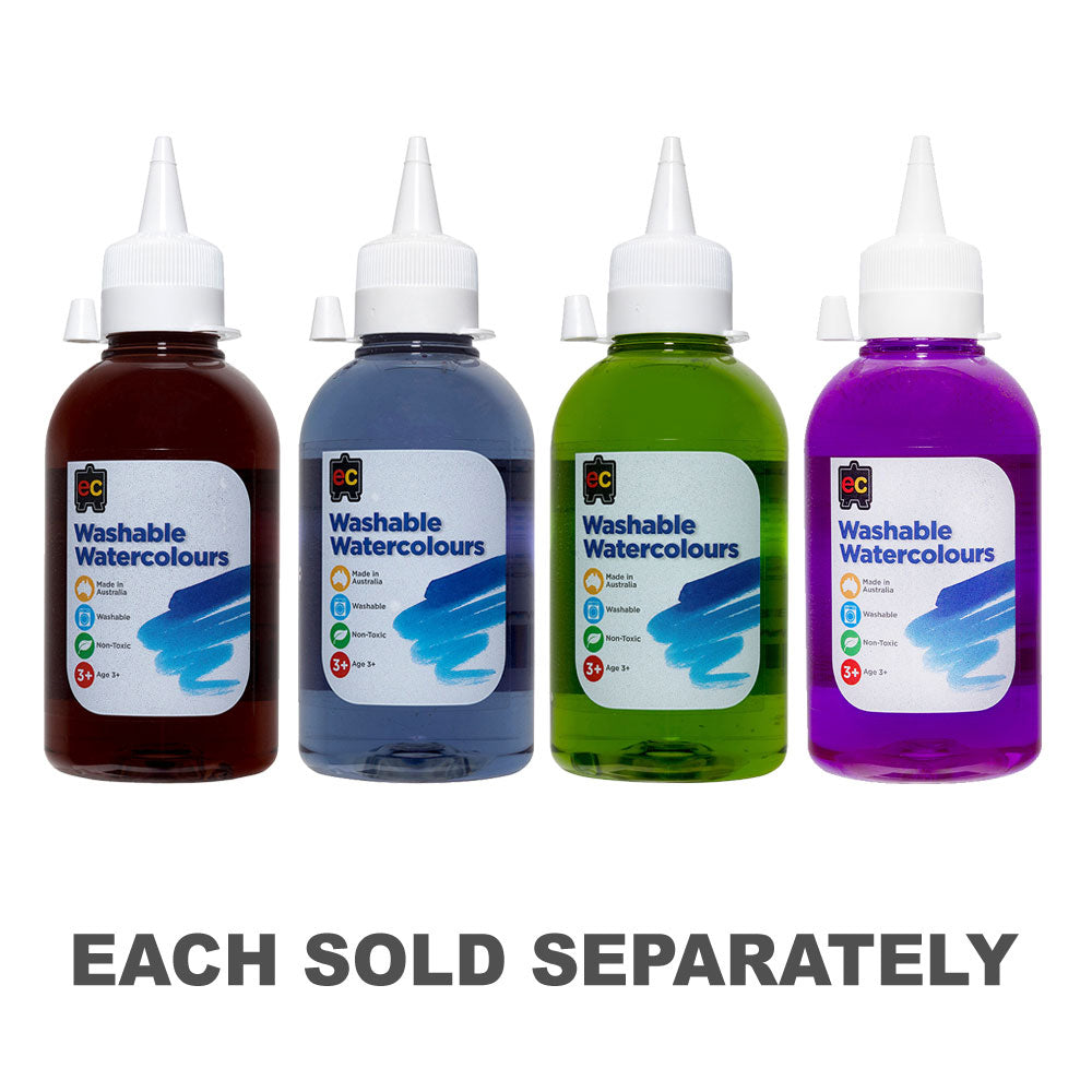 Housed in 250ml eco-friendly PET bottles, the Washable Watercolours not only radiate on paper but also show kindness to our planet.
