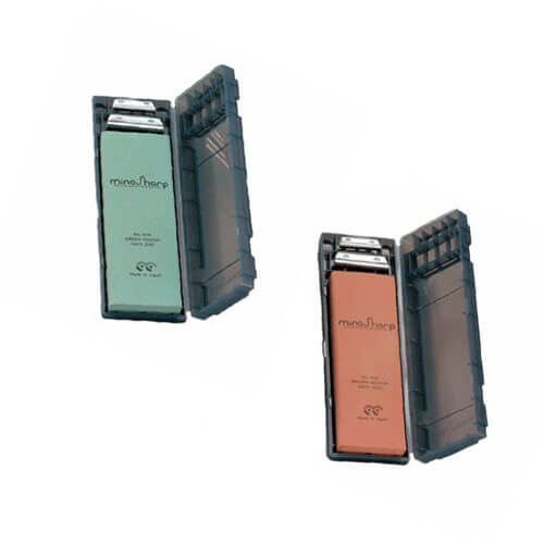 Global empfiehlt, Ihre Messer regelmäßig mit einem MinoSharp-Wasserstein zu schärfen. Zwischen dem Schärfen des Steins wird empfohlen, den Global-Feinkeramik- oder Diamantstab zu verwenden, um die Kanten Ihrer Messer ausgerichtet zu halten