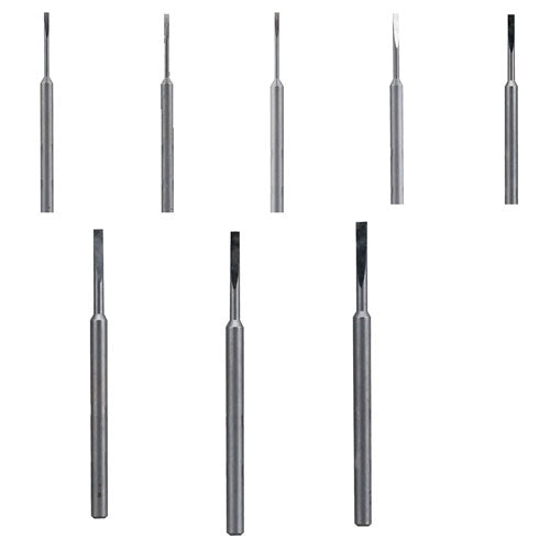 • Compatibility: The blades have a unified 3mm shaft diameter, which allows them to be used with a pin vise without having to change the collet chuck.