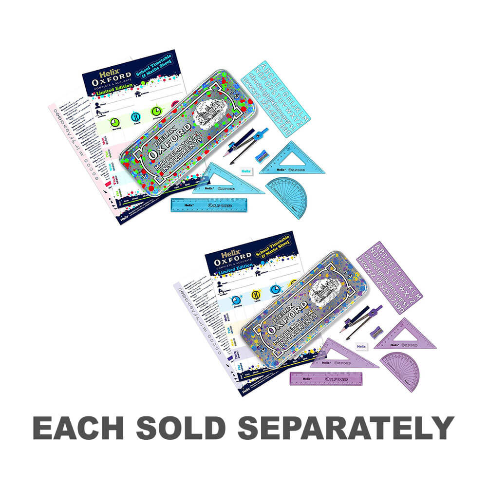 Das 9-teilige Mathe-Set von Helix Oxford Blue ist eine praktische Möglichkeit, sich mit den wichtigsten Mathe-Grundlagen für die Schule einzudecken. Im Lieferumfang sind eine Auswahl an Mathe-Werkzeugen zur Vervollständigung Ihrer Unterrichtsaufgaben sowie einige wichtige Schreibwaren und eine robuste Dose zur gemeinsamen Aufbewahrung enthalten.