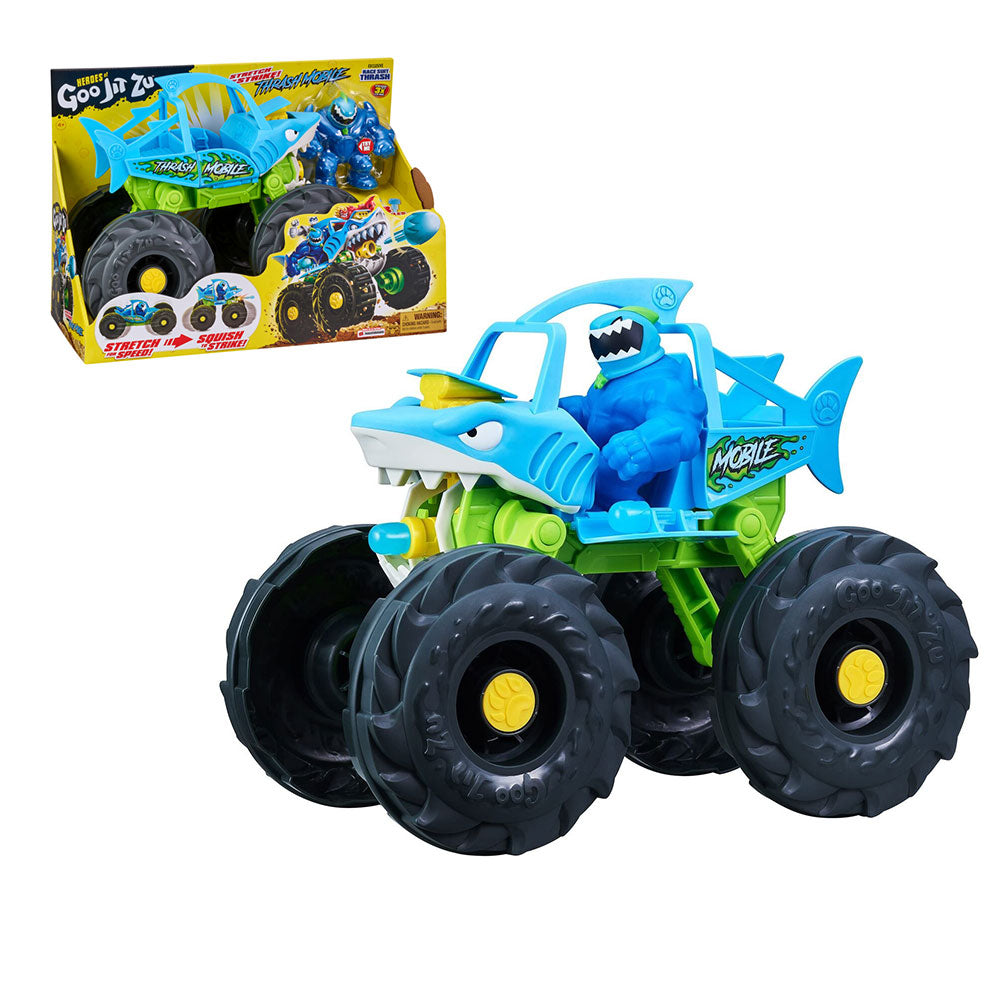 • Der Goo Jit Zu " „Stretch And Strike“ Thrash Mobile wird mit 3 Raketen geliefert, die in den Türen sitzen, und dem Launcher.