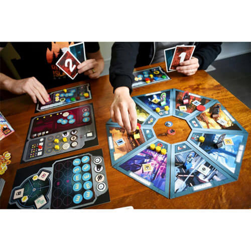In Too Deep bietet eine einzigartige Erzählung, die Sie in einem spannenden, strategischen Brettspiel für 1–5 Spieler in die Zukunft führt. Entwerfen Sie Charaktere und geben Sie Aktionen aus, um Ziele zu erreichen und Sets zu sammeln. Auf welcher Seite des Gesetzes werden Sie landen?