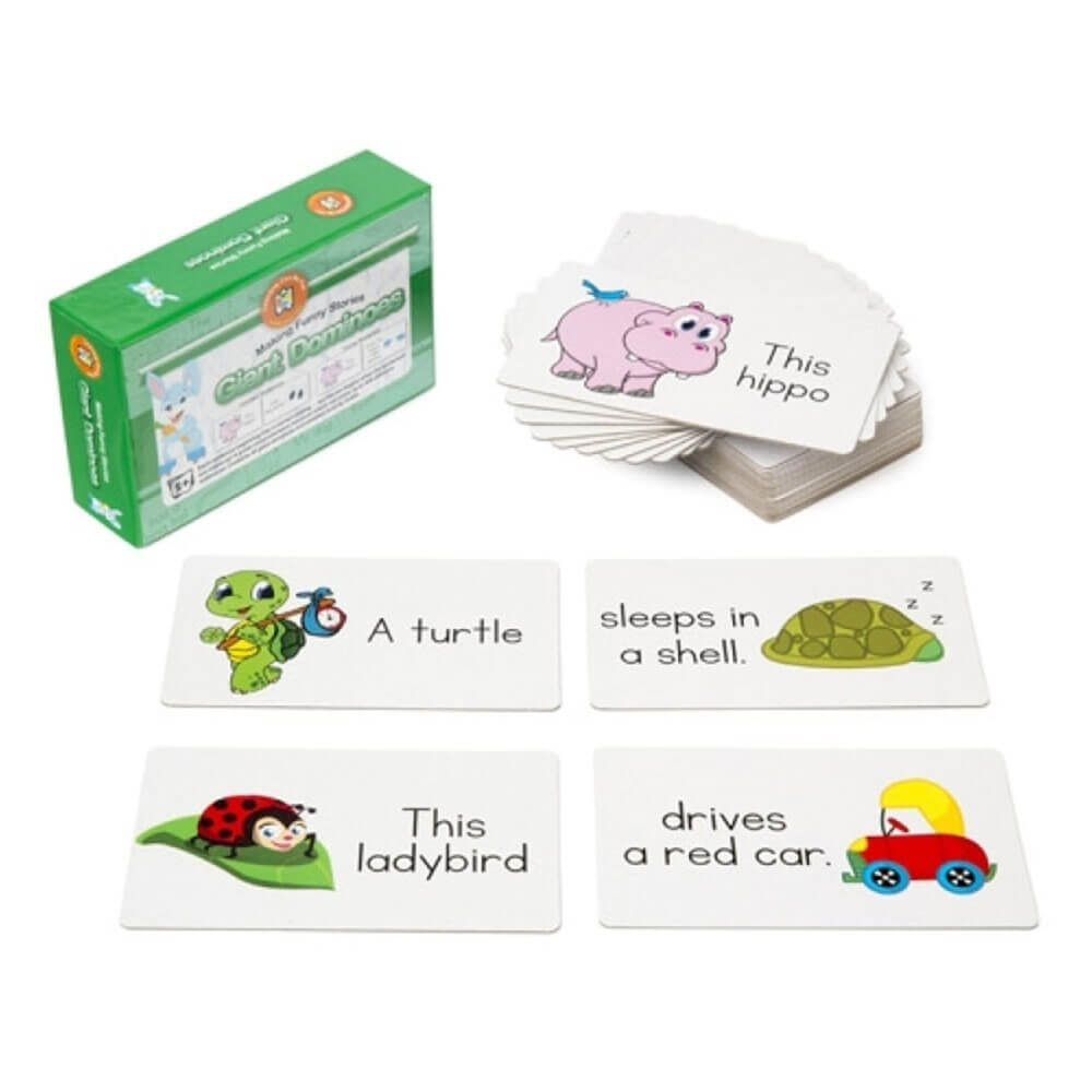 • Bilden Sie mit diesen Dominosteinen über 400 verschiedene Sätze.