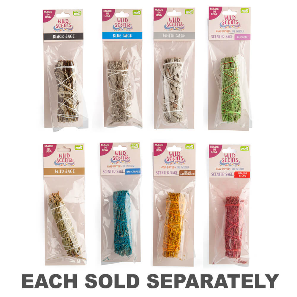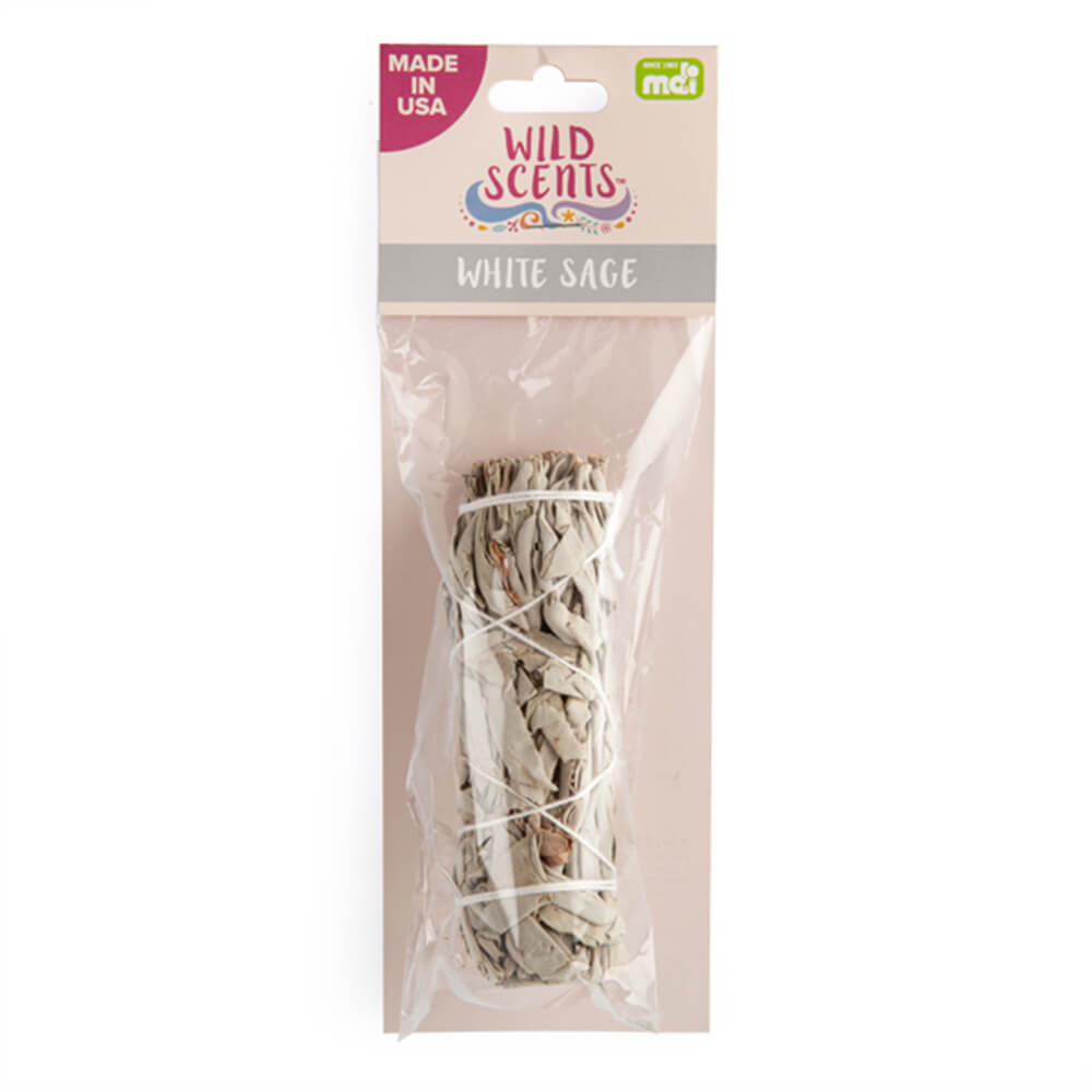 Handgebundener Salbei-Räucherstäbchen aus weiße Salbeiblätter und -stiele. Reinigen und reinigen Sie Ihren Raum mit seinem süßen, aromatischen Duft. Hergestellt in den USA.