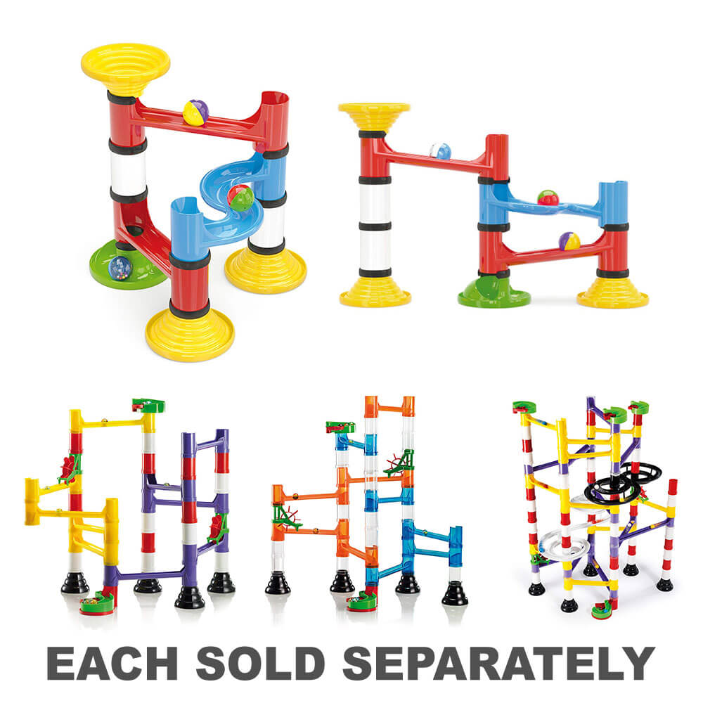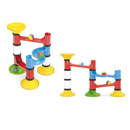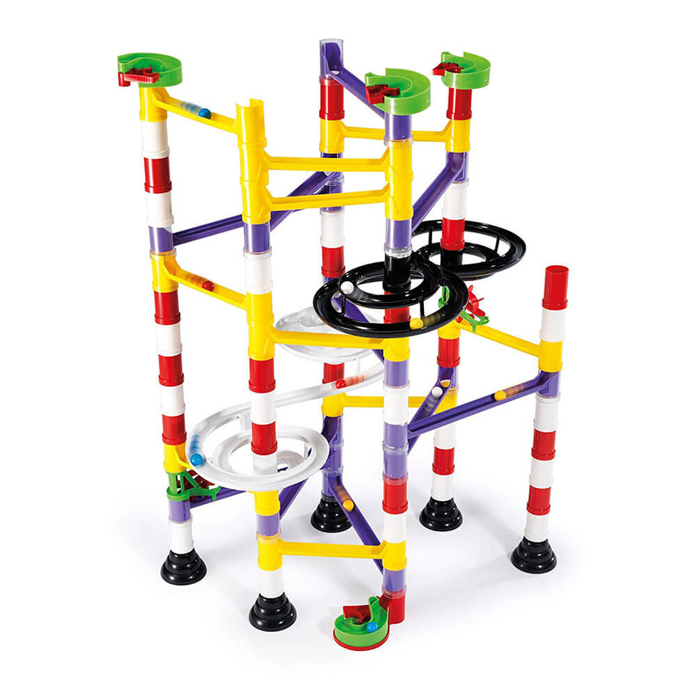 Die noch erwachseneren Murmelbahn-Fans werden vom Kugelbahn-Set Quercetti Double Spiral begeistert sein! Dieses Set richtet sich an Kinder ab 6 Jahren und enthält noch komplexere Teile, die sich zu beeindruckenden Kugelbahnen mit Drehungen, Windungen, mehreren Ebenen und natürlich zwei Spiralen zusammensetzen lassen!