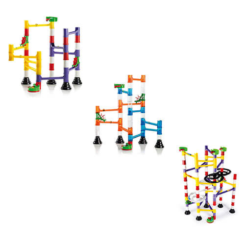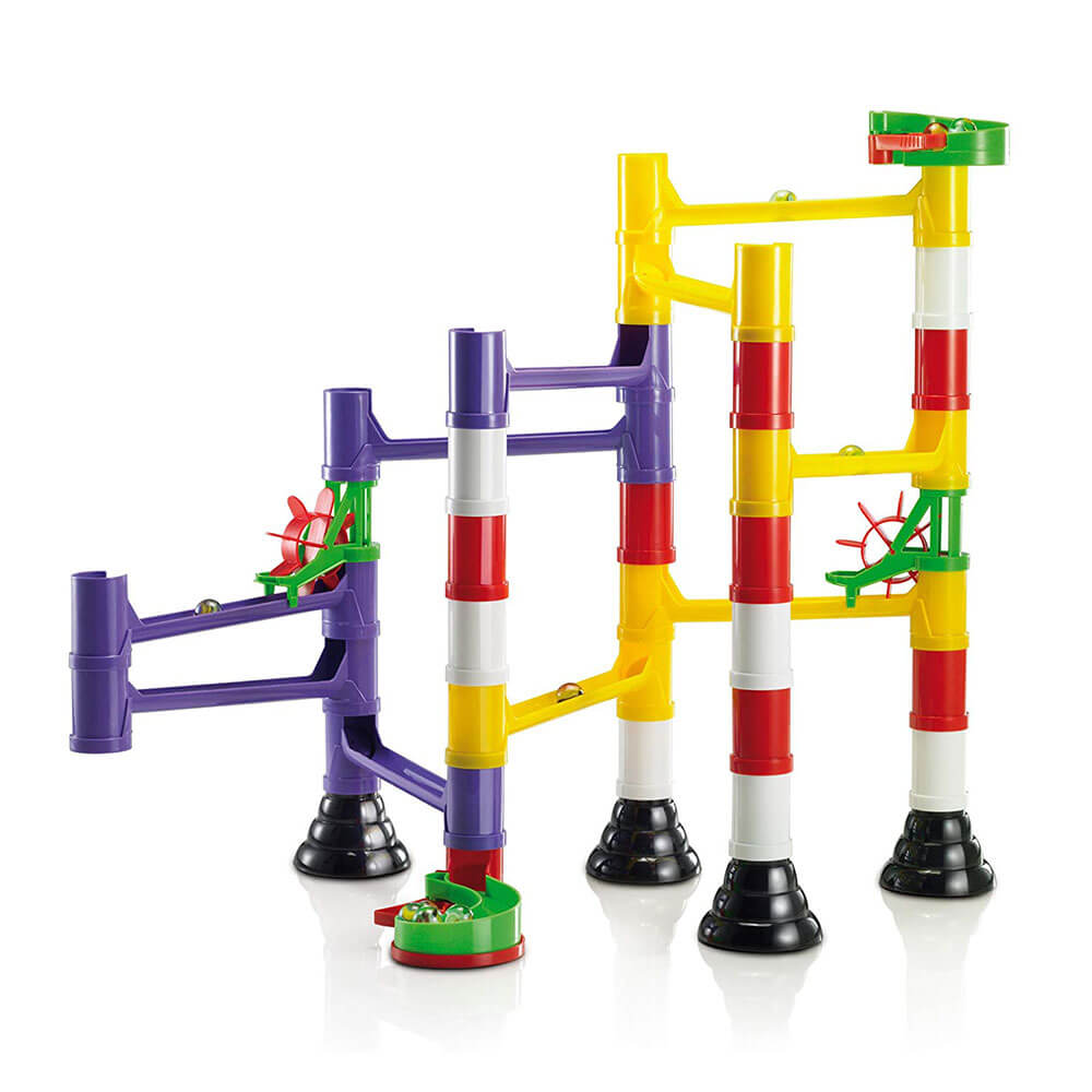 Für die ältere Zielgruppe (ab 4 Jahren) bieten wir die Kugelbahn Quercetti Basic oder das Set Quercetti Migoga Transparent an . Der Spaß steigt, weil diese Sets noch mehr Teile mit interessanten Features wie Rutschen, Spinnrädern und Brücken enthalten.