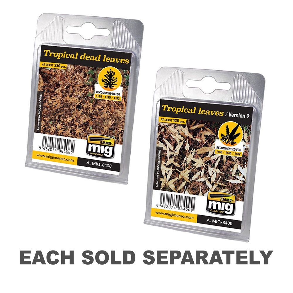 Tropische Blätter aus bedrucktem Papier, per Laser geschnitten, superrealistisch und detailgetreu. Perfekt, um Ihrem Diorama, Ihren Fahrzeugen oder Figuren den letzten Hauch von Realismus zu verleihen. Einfach mit etwas Weißleim anzubringen. Durch ihre Größe sind sie optimal für die Maßstäbe 1:48, 1:35 oder 1:32 geeignet. Mindestbestellmenge: 230 Stück.