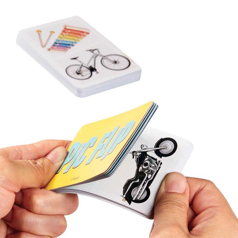 • Die Spieler blättern durch ihre Karten, um Bilder zu verbinden, Übereinstimmungen zu finden und alle ihre Karten loszuwerden. Sobald ein passendes Paar gefunden wurde, wird sofort ein anderes ausgerufen und die Suche geht von neuem los – denken Sie also schnell nach, denn der erste Spieler, der seine gesamte Hand loswird, ist der Gewinner. Für 2 bis 6 Spieler ab 7 Jahren.
