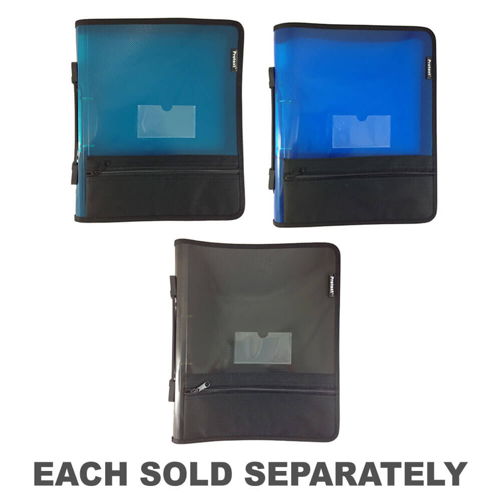 Protext Binder Buddy Zipper-Ordner verfügen über ein stilvolles und langlebiges Polypropylengehäuse, einen einziehbaren Griff und einen Reißverschluss.