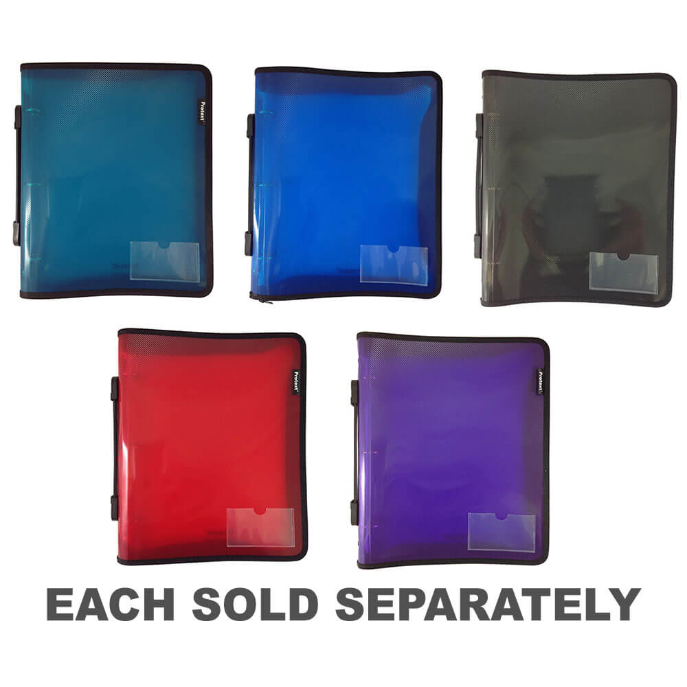 Protext Binder Buddy Zipper-Ordner verfügen über ein stilvolles und langlebiges Polypropylengehäuse, einen einziehbaren Griff und einen Reißverschluss.