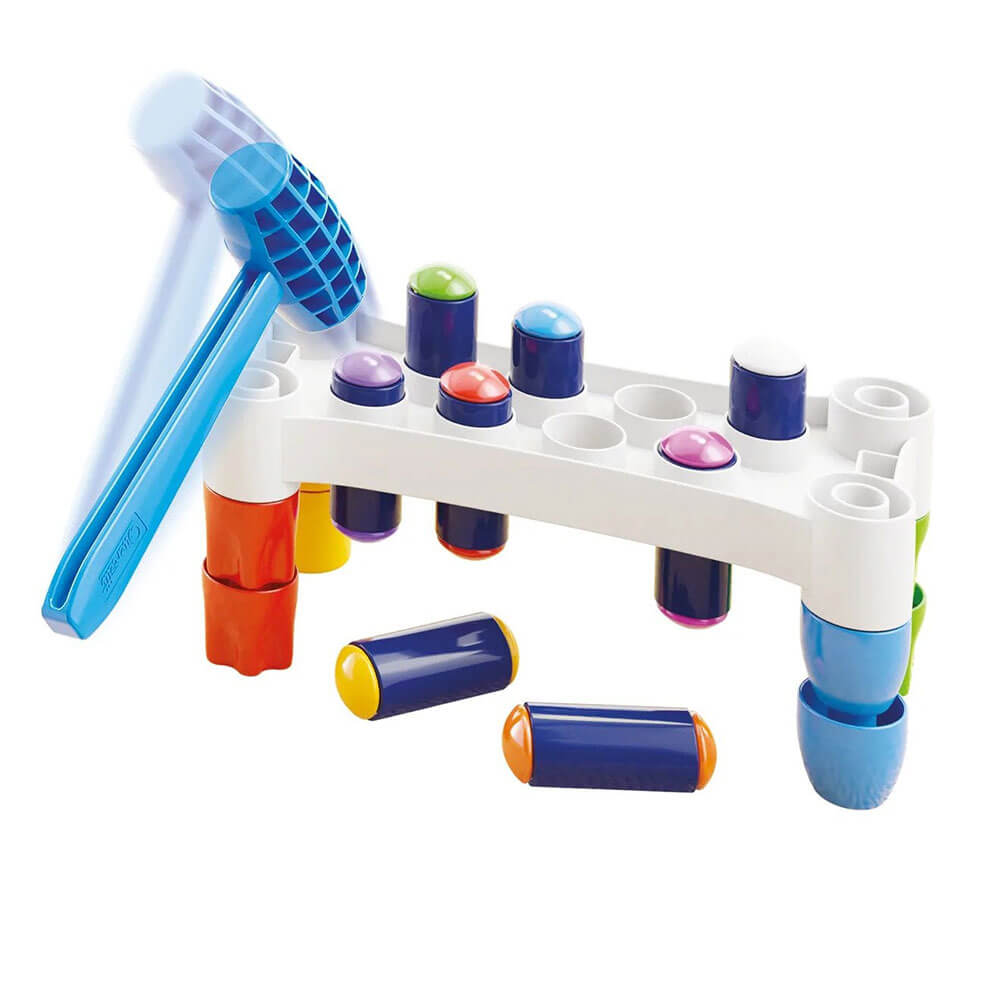 • Viel Spaß beim Schlagen der bunten Stifte mit dem Hammer und wenn Sie fertig sind, stellen Sie das Spiel auf den Kopf und beginnen Sie erneut.