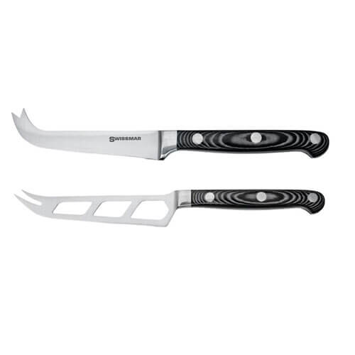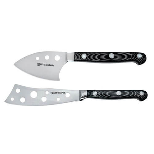 Swissmar Lux-Käsemesser aus geschmiedetem Edelstahl sorgen für zusätzliche Stabilität und die Micarta-Griffe sorgen für einen unverwechselbaren und eleganten Look. Perfekt für härtere Käsesorten wie Parmesan und Romano.