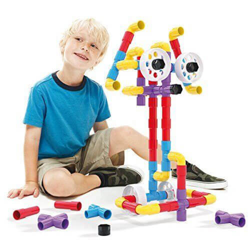 Auf Rädern macht alles mehr Spaß! Tubation Wheels Rohrkonstruktionen werden Sie immer wieder mit der Leichtigkeit überraschen, mit der Sie alles bauen und es dann dank der Räder, mit denen es ausgestattet ist, in Bewegung setzen. Mit nur 4 Arten von Rohren, Rädern und viel Vorstellungskraft und Kreativität nimmt eine Welt aus Strukturen, Fahrzeugen, Robotern und Raumstationen Gestalt an, mit der immer neue Verbindungen ausprobiert werden können, wie einfach und intuitiv sie auch sein mögen, und die sich endlos ändern und modifizieren lassen. Die hohe Qualität der verwendeten Materialien und die sorgfältige Gestaltung von Formen und Abmessungen der Elemente garantieren lange Spielstunden in absoluter Sicherheit und Zufriedenheit.