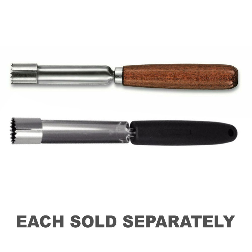 Ein professioneller, 16 cm langer Apfelbohrer aus Edelstahl mit gezackter Kante, der leicht durch den Apfel geht. Ausgestattet mit einem Polypropylengriff für einen bequemen Halt.