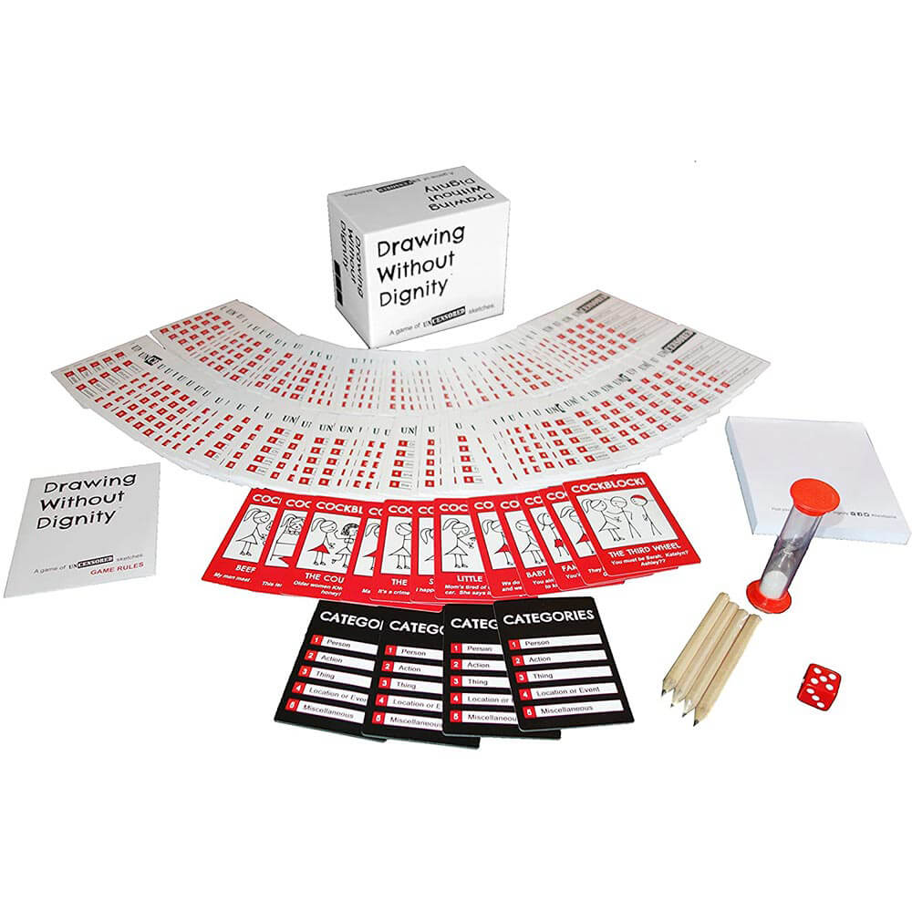 - Drawing Without Dignity ist das perfekte Partyspiel für den Spieleabend oder als Geschenk. Partyzeit ohne die Kinder! Aber im Ernst, das ist nichts für schwache Nerven und nur für Erwachsene.