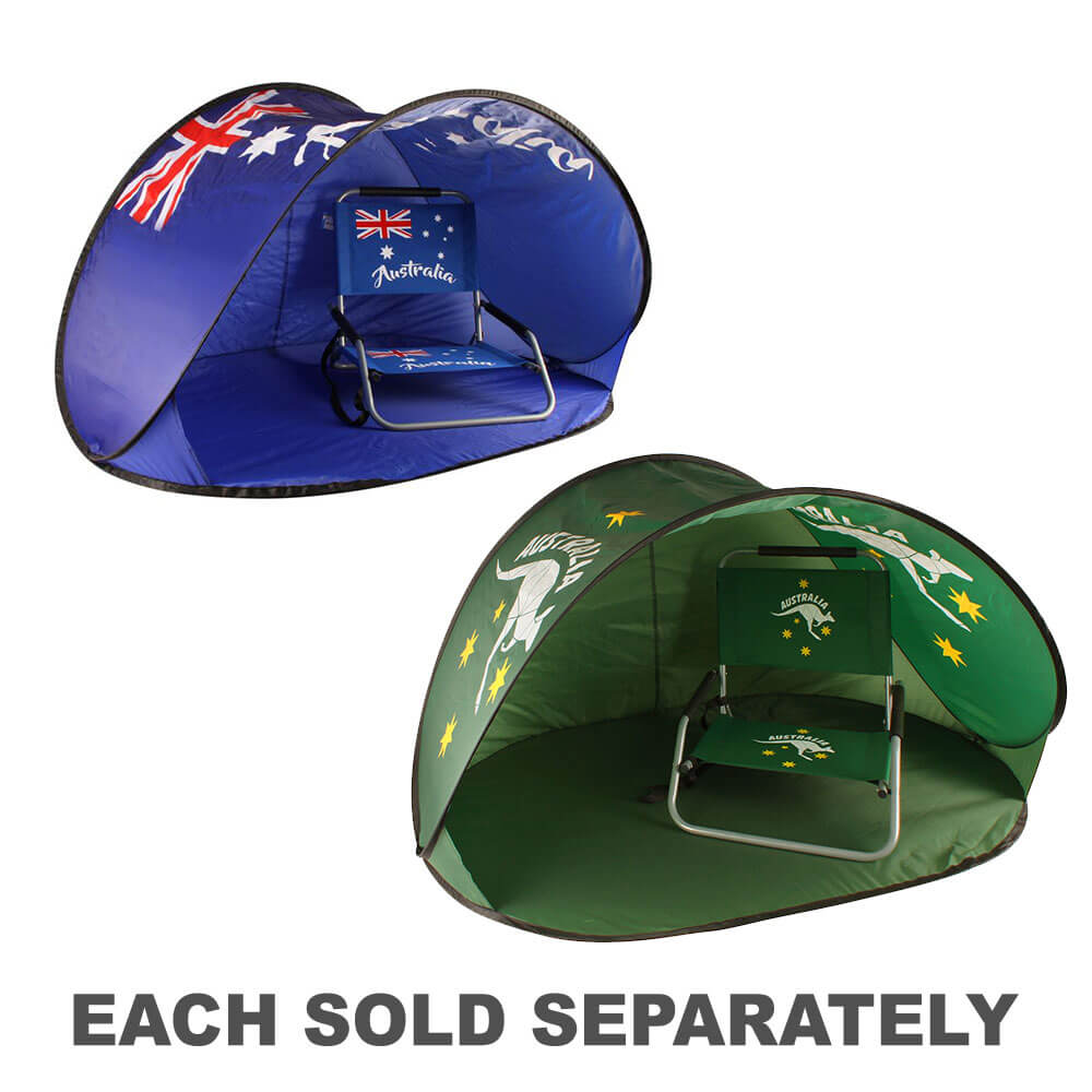 Machen Sie es sich mit diesem zusammenklappbaren Sonnenschirm bequem und setzen Sie sich nicht zu sehr der prallen Sonne aus. Entworfen mit grünem und goldenem Flaggen-Motiv, eignet es sich hervorragend, um den Australia Day zu feiern und es am Strand zur Schau zu stellen!