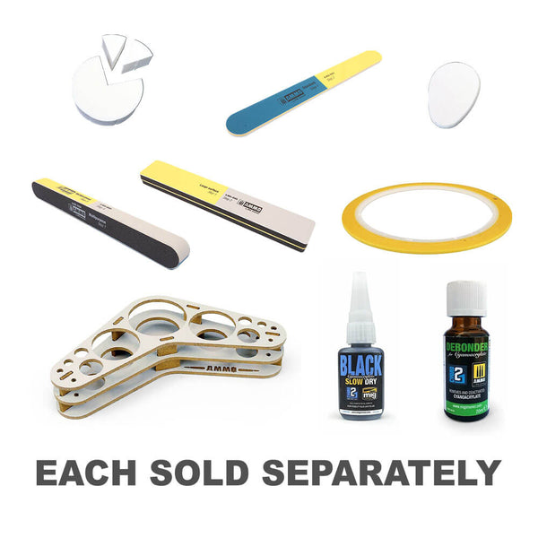 It is a complete and comprehensive set that includes the products used most in the assembly and clean up processes that complement the painting steps in aircraft, military vehicles, dioramas, and every other modeling subject. This set is the ideal solution for modelers seeking all of the products required to quickly and accurately assemble models.