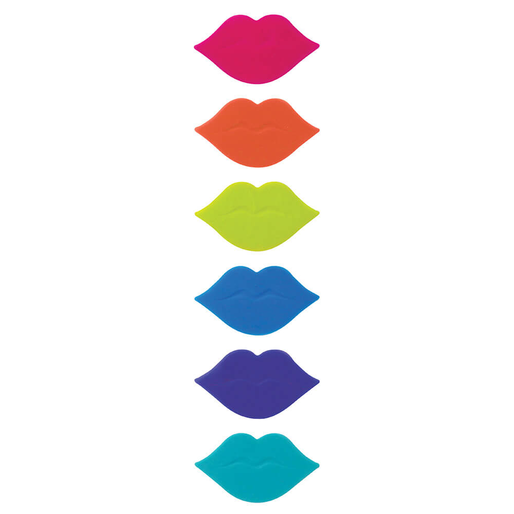 - Set of six lip-shaped markers in different vibrant colors made of durable silicone