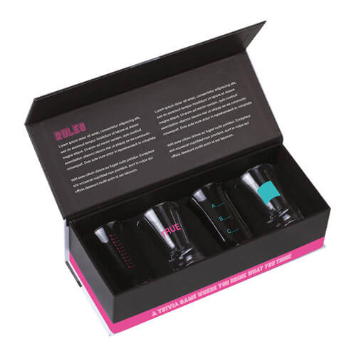 • Open a bottle and read aloud a question. To answer, one person pours a drink… And fill their glass to the line that represents their answer. Wrong answers result in shots being drunk.