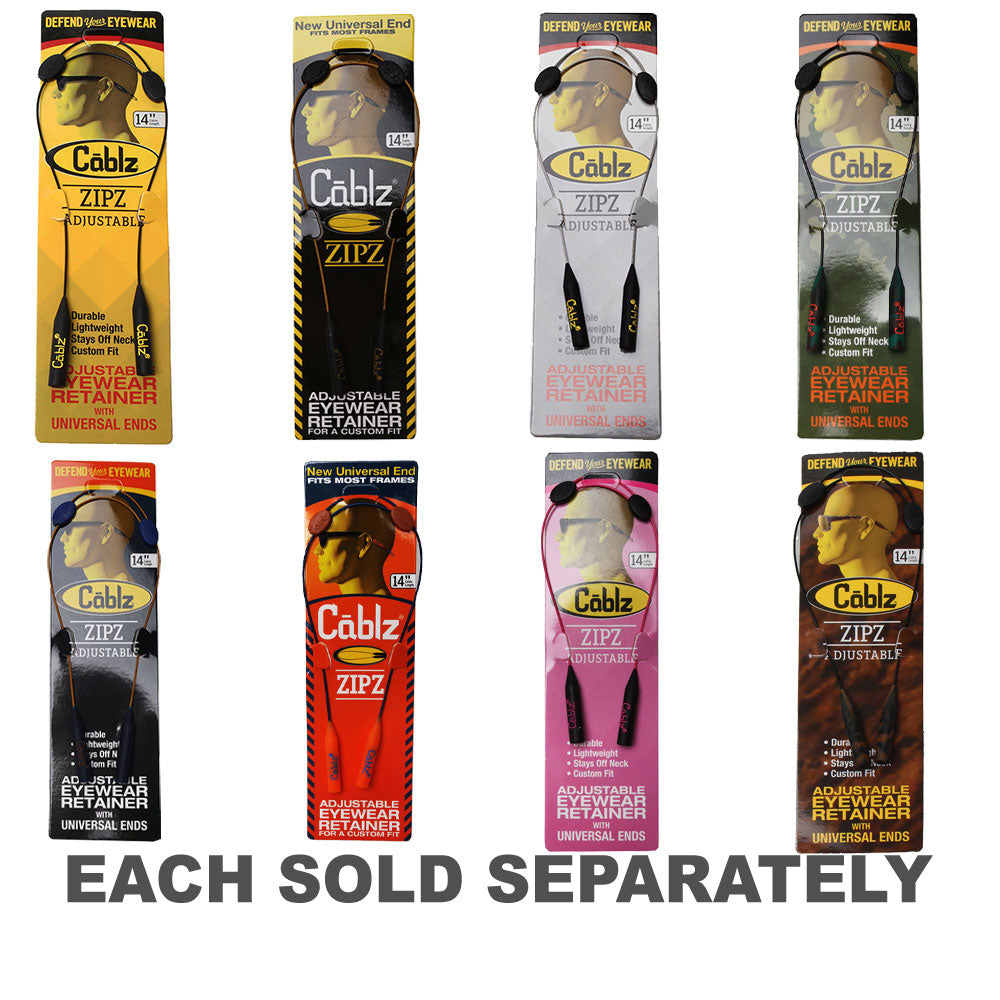 Cablz are the ideal eyewear retention system that will keep your eyewear secure and stylish. You will always be able to find your glasses with Zipz.