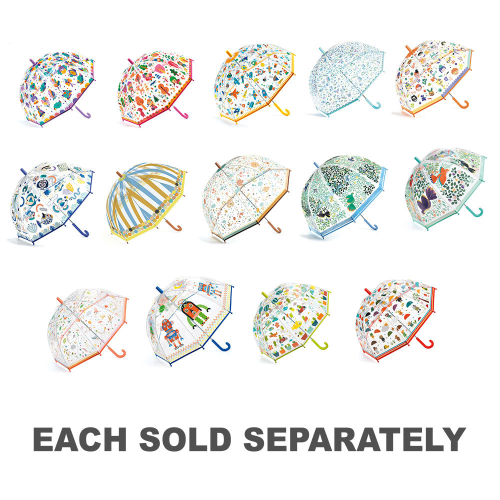 Beautifully illustrated adult-sized umbrella to brighten a rainy day. Transparent PVC allows you to see where you are going and the high dome provides better coverage.