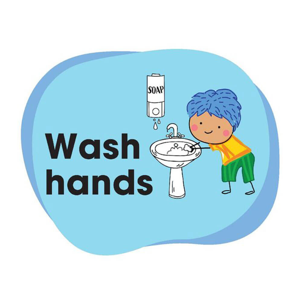 • The floor sign is designed to remind students and patrons to wash their hands.