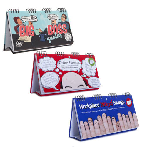 • This cheeky flipbook has a fold out stand, so you can place it on your desk, your bosses' desk… (Or anywhere you want really)
