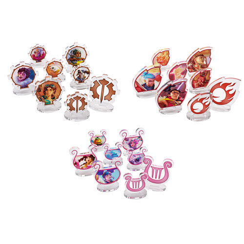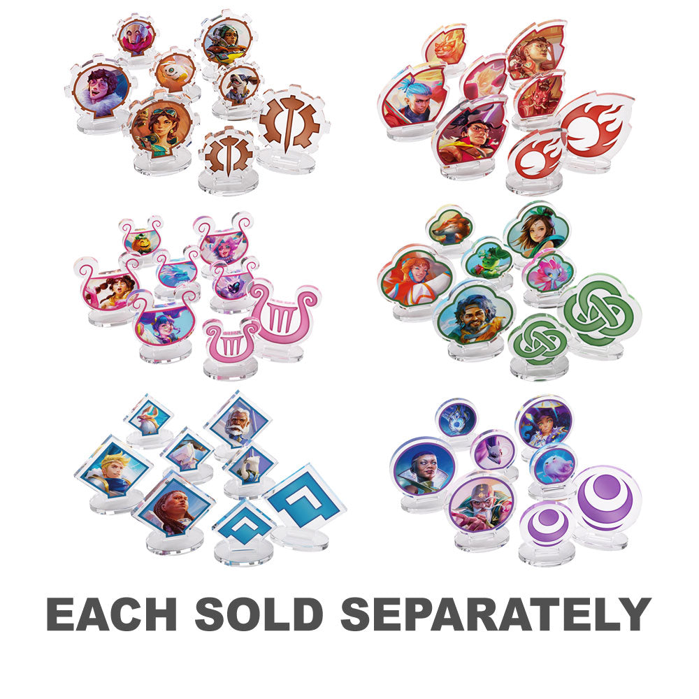 There will be 6 sets of standees available, one for each of the six factions in the game. Each set includes 3 hero figures and 3 companion figures - every hero and companion from the game's first set is represented! Every set also has a uniquely designed shape for its figures, making it easy to distinguish between heroes and companions from different factions.