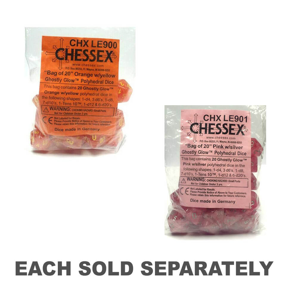 - Purchase includes 20 polyhedral dice in the Ghostly Glow style