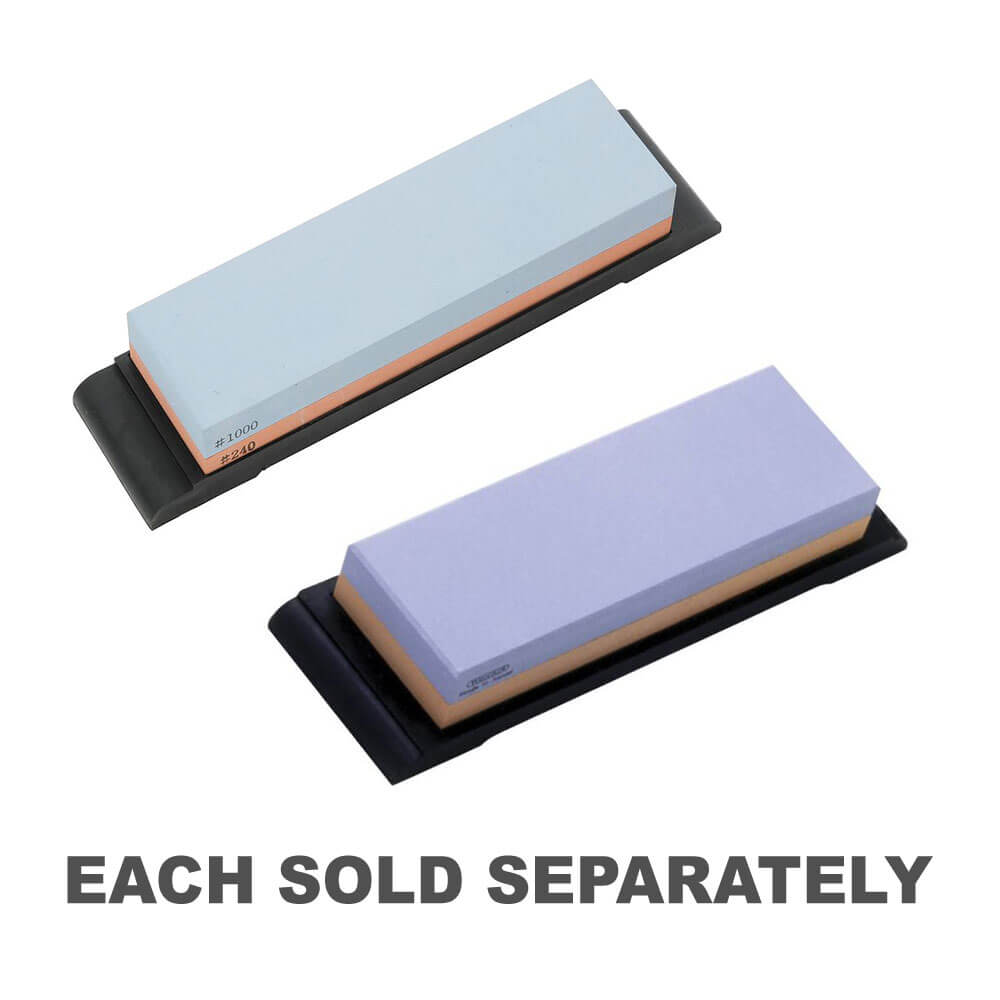 This combination sharpening whetstone by GLOBAL has been specially developed for use with professional quality kitchen knives. If you follow the detailed instructions enclosed in the packaging, you can achieve spectacular results, even exceeding the knives, ex-factory sharpness levels! It is the recommended way to keep your knives in the best condition for use. This stone features 2 different grits - 240 and 1000. The 240 grit is classed as a "course" finish, and should be used when knife blades are chipped, damaged or completely blunt. The 1000 grit is classed as a "medium" finish and is the main stone for sharpening knives which have become blunt.