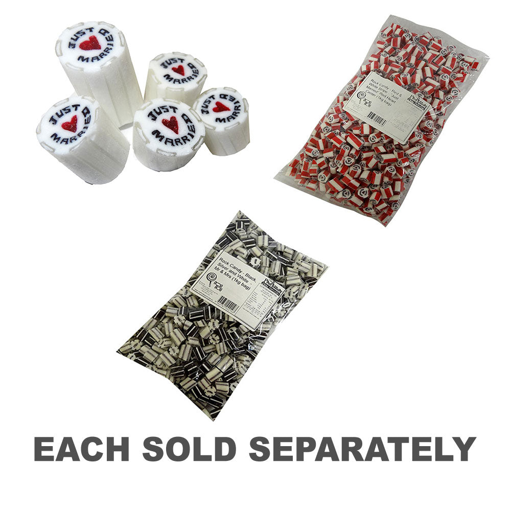 • Perfect for Wedding Celebrations: Whether it's a wedding reception, bridal shower, or any event that celebrates love and commitment, "Just Married" with Red Heart Rock Candy in an all-white is a truly romantic addition to your special day.