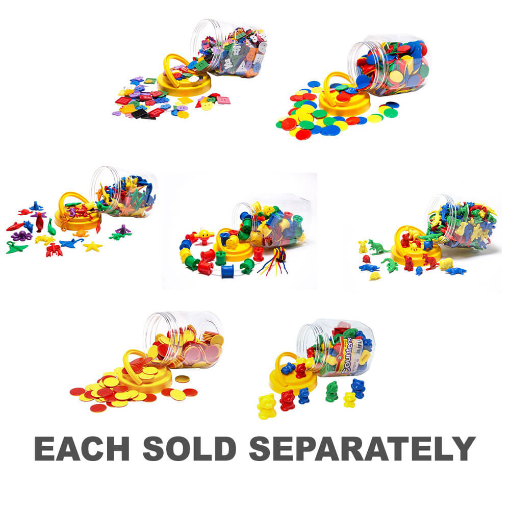 • The counters come in assorted colours, shapes and sizes.