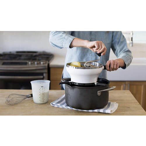 • ●It is made of stainless steel that does not easily transfer heat to your hands even if you put freshly boiled ingredients in it.