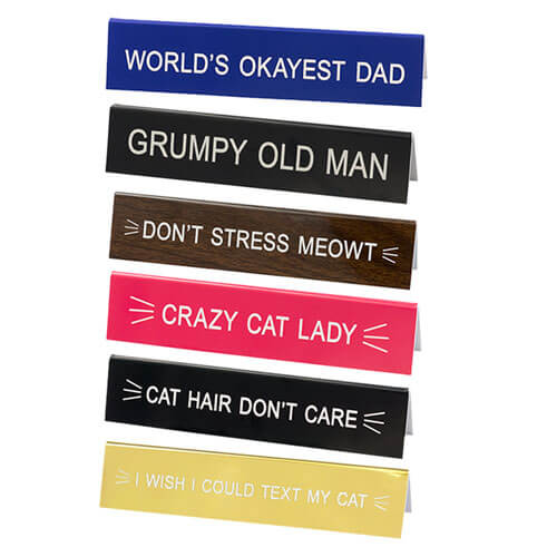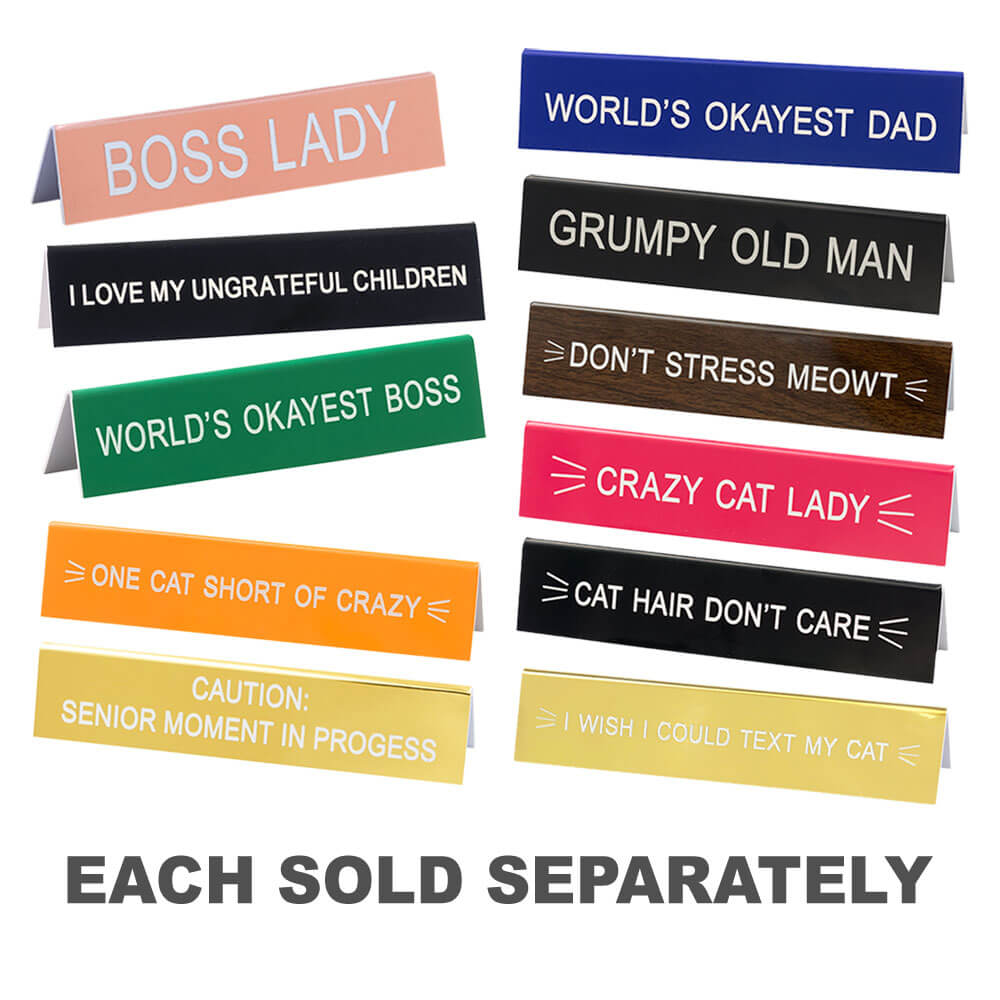Break up the monotony of work and bring some LOLs to the office with this green desk sign from SAY WHAT?. Caption reads: 'World's Okayest Boss'. Product measures 14cm x 3cm.