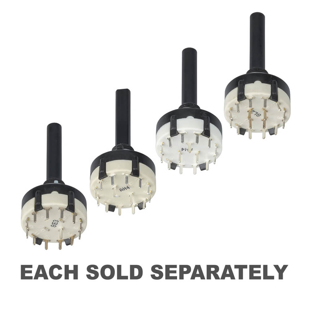 These switches have a removable ring with tab which can be inserted into the switch several ways to your particular requirements. For example, if you purchased a 1 pole x 12 way (max) switch you could convert it to, say, 1 pole 7 way between stops. They have a standard 1/4 shaft. Panel hole 10mm.
