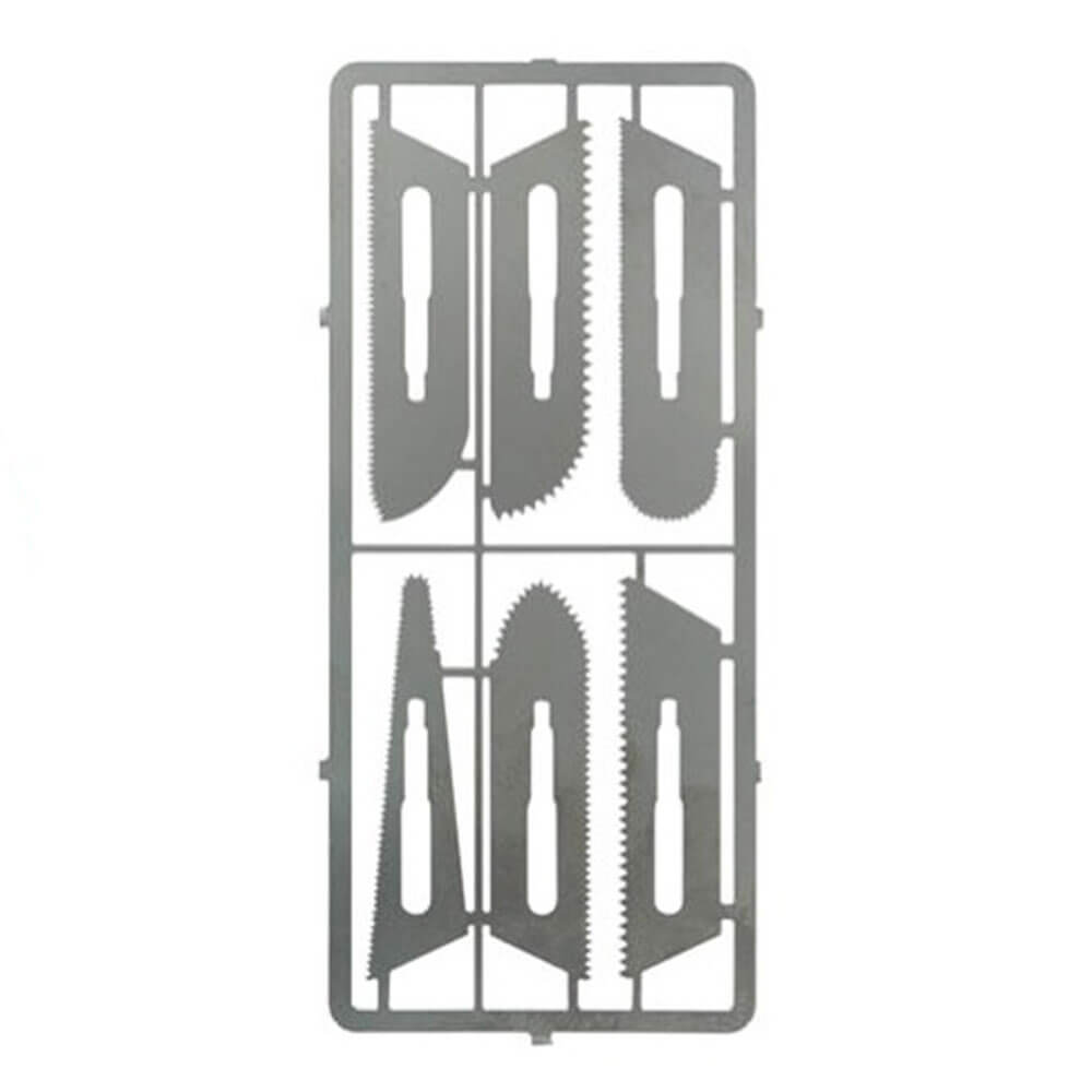 • The set includes 6 very fine saw blades (0.24 mm thickness). Excellent for intricate sawing and cutting in plastics, wood and photo etched parts. Blades can fit all small fitment scalpel handles.