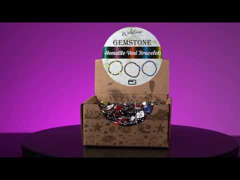 Bær helbredende energi med dette skinnende hæmatitarmbånd. Det kan variere mellem 6 farver: rød, blå, lyserød, turkis, gul, klar. Funktioner hæmatitperler, sølvafstandsperler og glasperler med farvet streng.