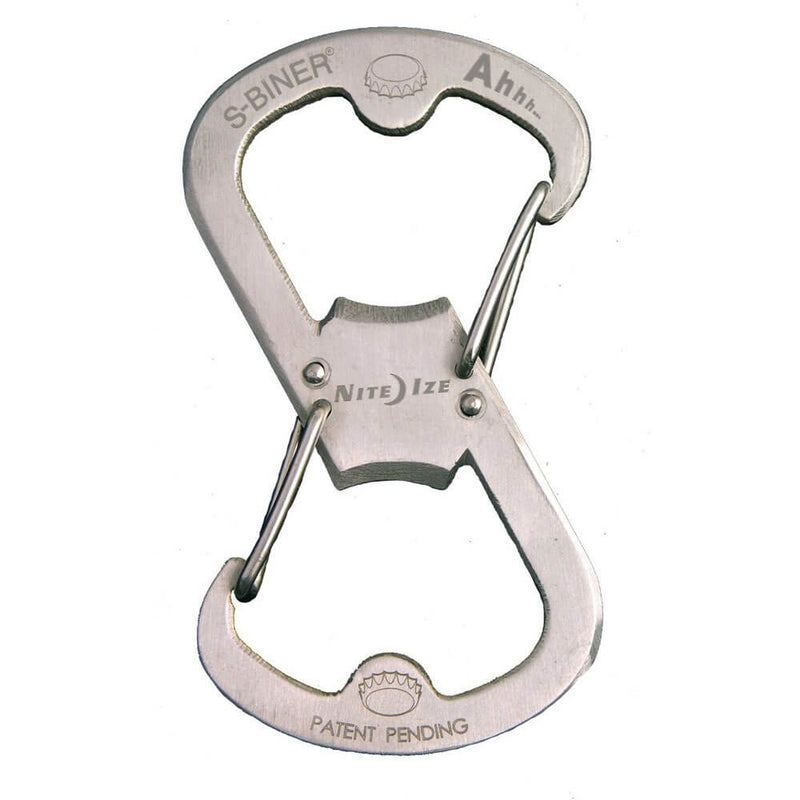 Lavet af rustfrit stål af høj kvalitet, vores karabiner/flaskeåbner S-biner Ahhh trækker dobbeltpligten af den højeste orden. Ligesom vores klassiske S-Biner, er begge ender af S-biner Ahhh-funktionen robuste portlukninger, hvilket gør den til en multifunktionel carabiner, som du kan bruge til at fastgøre og bære nøgler, vandflasker og campingudstyr; Hang lanterner og lys; Eller klip to ting sammen. Men vi navngav ikke denne lille hvalp "Ahhh" for intet - begge ender fungerer også som flaskeåbnere være i stand til at åbne en flaske med din yndlingsdrik, hvilket gør dig til misundelse af tørstige mennesker overalt.