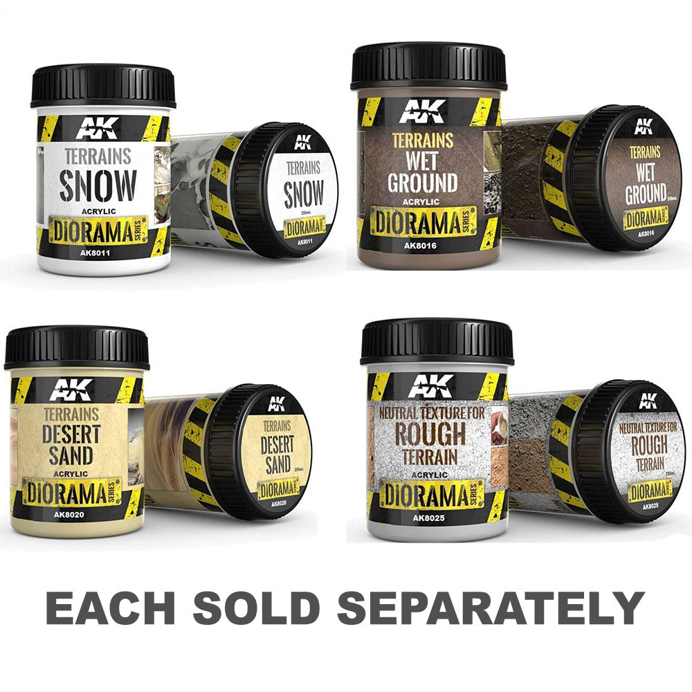 - Texture: The line includes a variety of products to simulate different terrains, such as asphalt, dry ground, sandy desert, and swampy water.