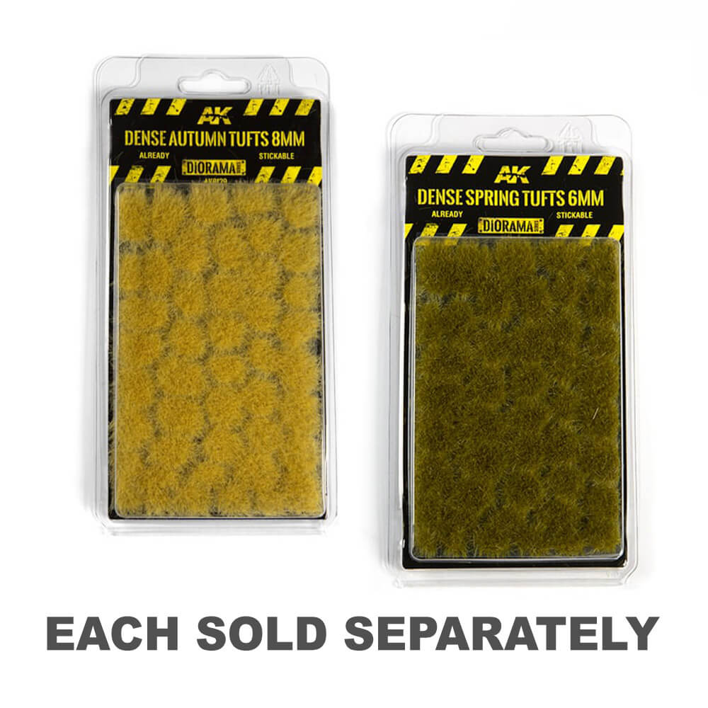 Vi anbefaler at fikse dem med små mængder hvidt lim eller AK118 grus & sandfixer for yderligere at styrke krydset. Vælg den type græs, du har brug for, og opret din scene hurtigt og nemt ved hjælp af den AK-Interactive Diorama Series-produktsortiment.