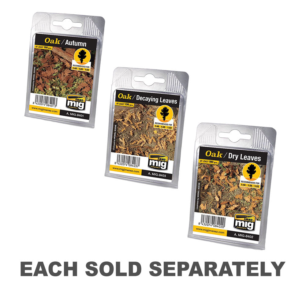 Tør eg blade lavet af trykt papir skåret af laser, super realistisk og i detaljer. Perfekt til at tilføje et sidste strejf af realisme til din diorama, køretøjer eller figurer. Let at indsætte med lidt hvid lim. Deres størrelse gør dem til at optimere til skalaer 1:48, 1:35 eller 1:32. Minimumsmængde inkluderet: 190 stk.