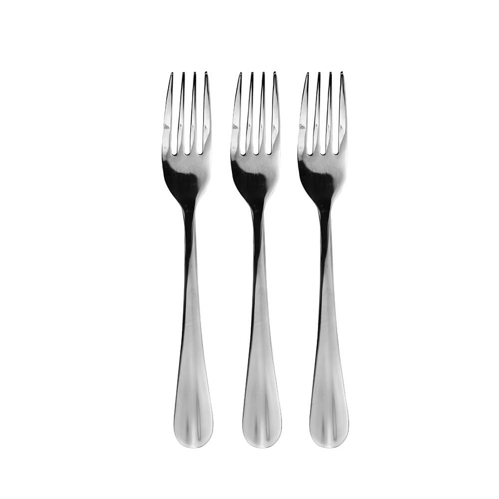 Avanti Table Fork -sættet på 3 gafler med sit enkle og klassiske mønster er designet til at supplere enhver tabelindstilling. Perfekt og holdbar nok til daglig brug, dette bestik er lavet af rustfrit stål af høj kvalitet og har velafbalancerede håndtag med en slank lodret linje for et tidløst, elegant look.