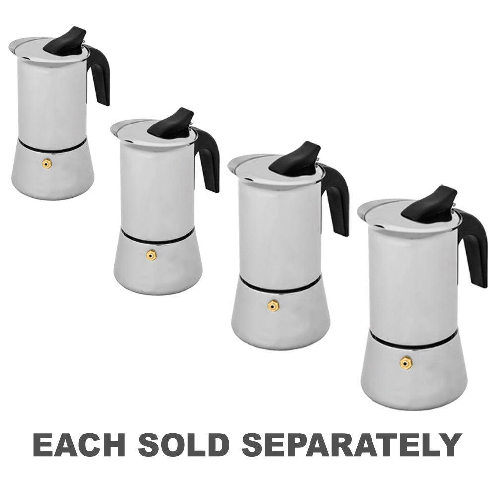 Avanti Inox espresso -kaffemaskine med sin moderne form og dens høj kvalitet i rustfrit stål er både stilfuld og funktionel. Denne todelt komfur topbrygger er designet til at give jævn varmefordeling til forbedret smag og aroma. Den leverer lækker, rig espresso på kun få minutter og har en sikkerhedsfrigivelsesventil til at kontrollere det tryk, som vand leveres til kaffegrunde, samt en langvarig silikonpakning med høj temperatur. Velegnet til alle varmekilder inklusive induktion