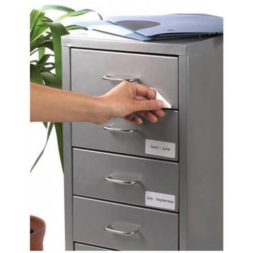 - Etiketter skræl let af, når det er nødvendigt, så du let kan opdatere oplysninger eller bruge varen igen