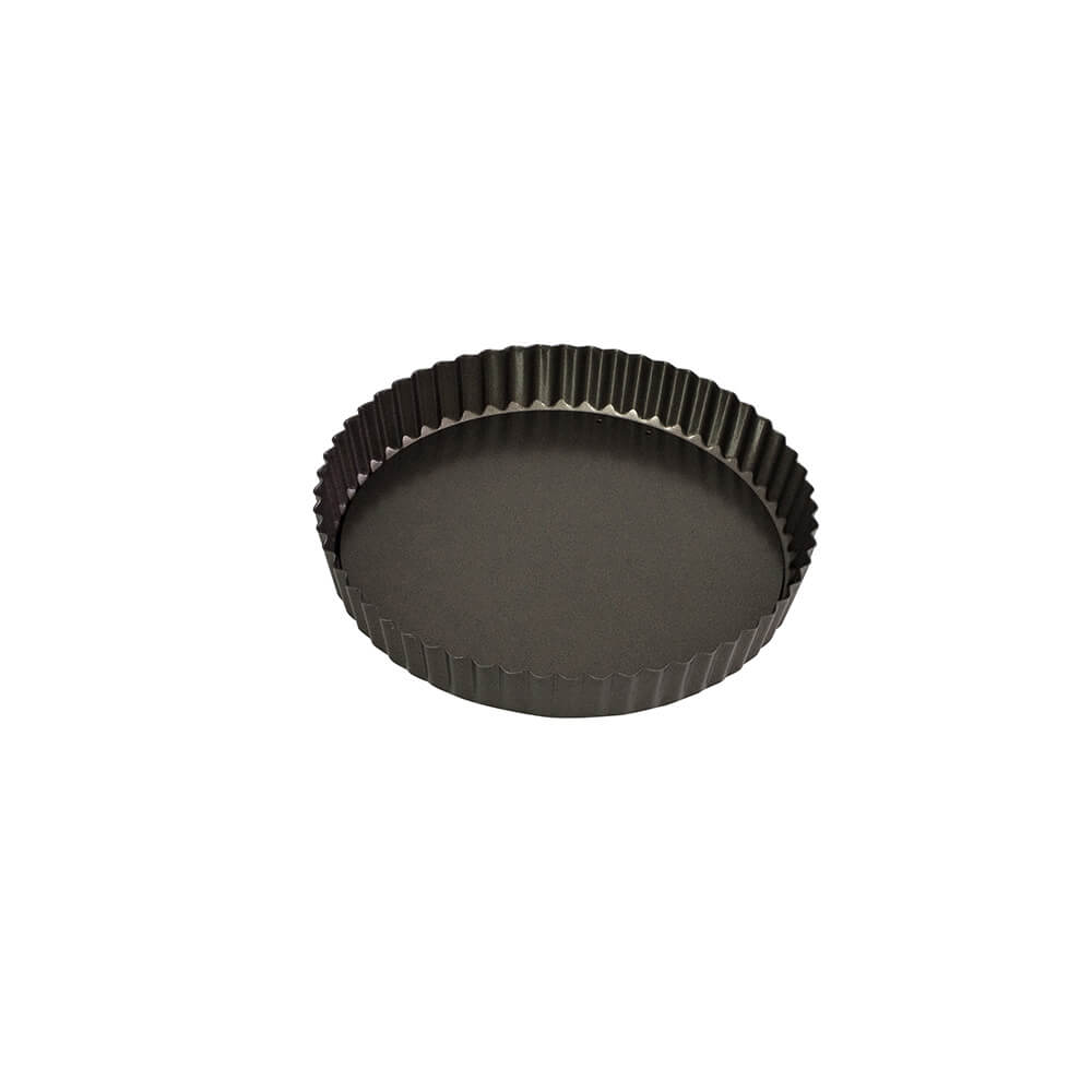 En kraftig riflet rundt tin ideel til fremstilling af quiche, tærter og flaner. Har en dobbelt non-stick coating og løs base for nem frigivelse.