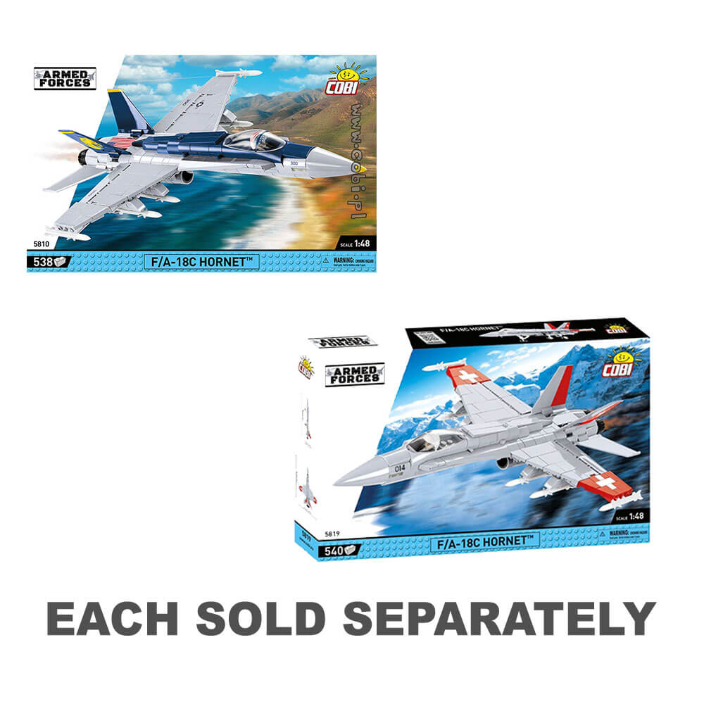 F/A-18C Hornet er en unik multirole-fighter-model i farverne i Schweiz. Flyet blev forberedt i en 1:48 skalamodel ved hjælp af 540 Cobi -konstruktionsblokke. Sættet inkluderer tryk af høj kvalitet, der imiterer maleriet af det originale fly. Modellen er udstyret med en sammenklappelig undervogn og roterende hjul. Under vingerne er et stort arsenal af våben. Du kan placere en speciel pilotfigur i kabinen. Sættet inkluderer også en blokdisplay -stativ og en plade med navnet på flyet. Dette eksklusive, licenserede sæt er rettet mod alle, uanset alder, herunder luftfart og militære fans. Flyet ser lige så attraktivt ud på et kontor eller i en teenagers værelse.